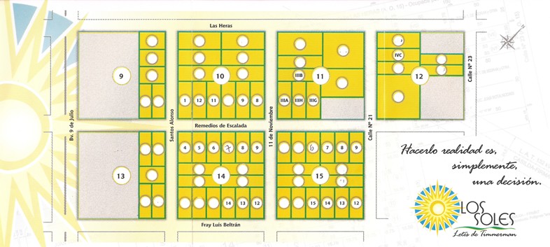 Actualmente se encuentran vendidos más del 60% de los lotes, hay varias viviendas terminadas y ocupadas y otras en etapas de construcción. Tenemos el orgullo en afirmar que el Loteo “Los Soles” es el emprendimiento urbanístico privado más importante de los últimos años.