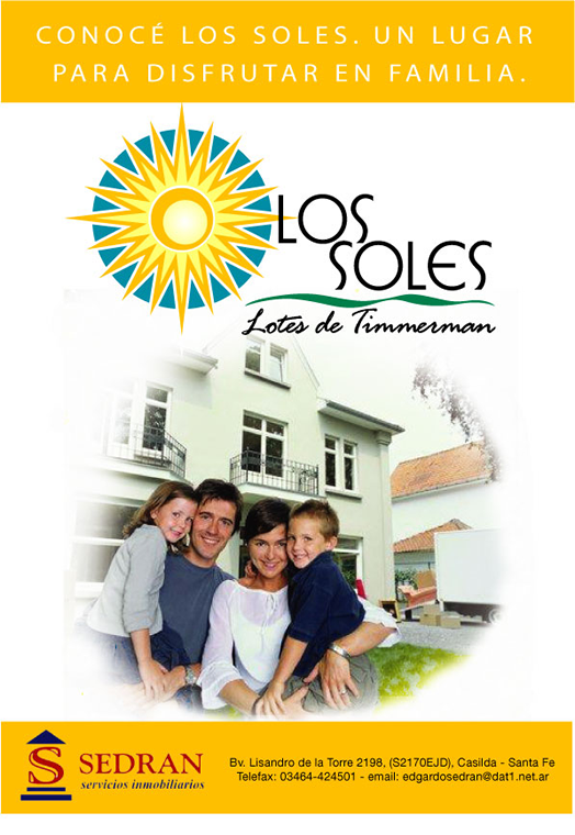 En el año 2004, adquirimos en el Barrio Timmermann de esta ciudad, un predio de 7 hectáreas, que se utilizaba únicamente para fines agrícolas. Con el objetivo de satisfacer una creciente demanda de terrenos amplios, diseñamos un loteo deClic para ampliar más de 70 terrenos, cuyo promedio de superficie es de 700 metros cuadrados. Se realizaron los planos de relevamientos de las manzanas, se donaron las calles a la Municipalidad, se realizaron en forma privada los servicios de cordón cuneta con estabilizado, agua corriente, cloacas, red eléctrica. Se gestionó ante la Cía. General de Gas, la llegada de la red de gas y ante la Municipalidad de Casilda, la sanción de una ordenanza que definió al loteo, apto únicamente para viviendas y pequeños comercios, protegiendo a los adquirentes, de la instalación de galpones y cualquier emprendimiento que altere la tranquilidad del barrio.